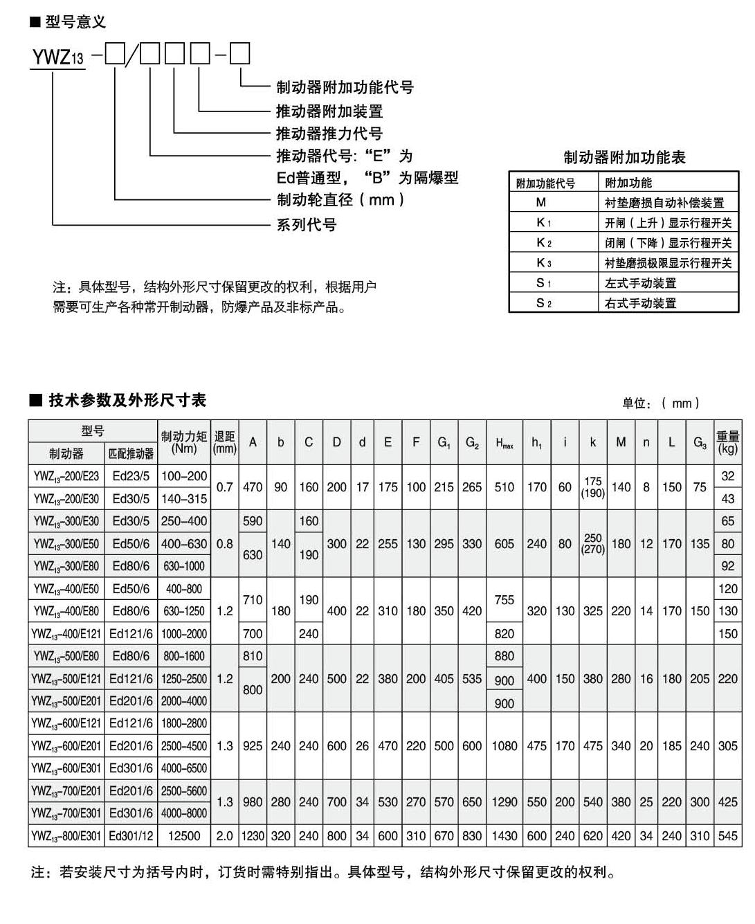 YW,YWZ13系列電力液壓鼓式制動(dòng)器